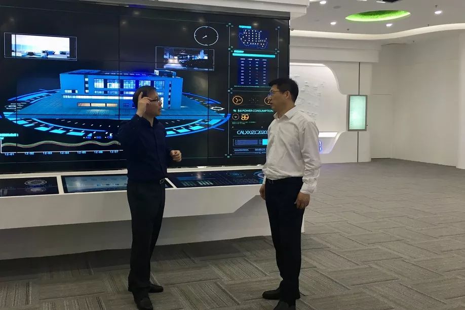 戴永康局长一行首先参观了米兰milan物联展厅,董事长刘柏呈结合米兰milan的科技与商业模式创新,详细介绍了米兰milanCoral物联网综合管控平台与数字孪生两大核心技术,并就企业经营情况、目标与规划、现阶段重点工作等方面进行了汇报。